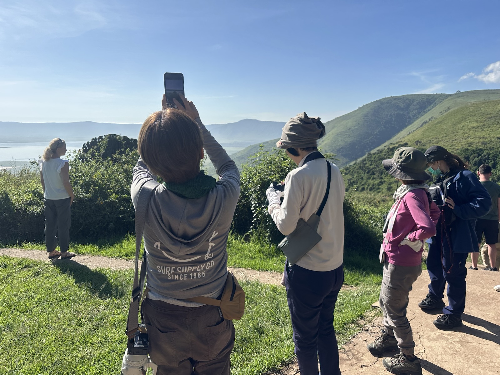 0832-0839ビューポイント。クレーターが見渡せる場所。今日は全て見える。記念撮影をしてクレーター降り口まで道を急ぐ
