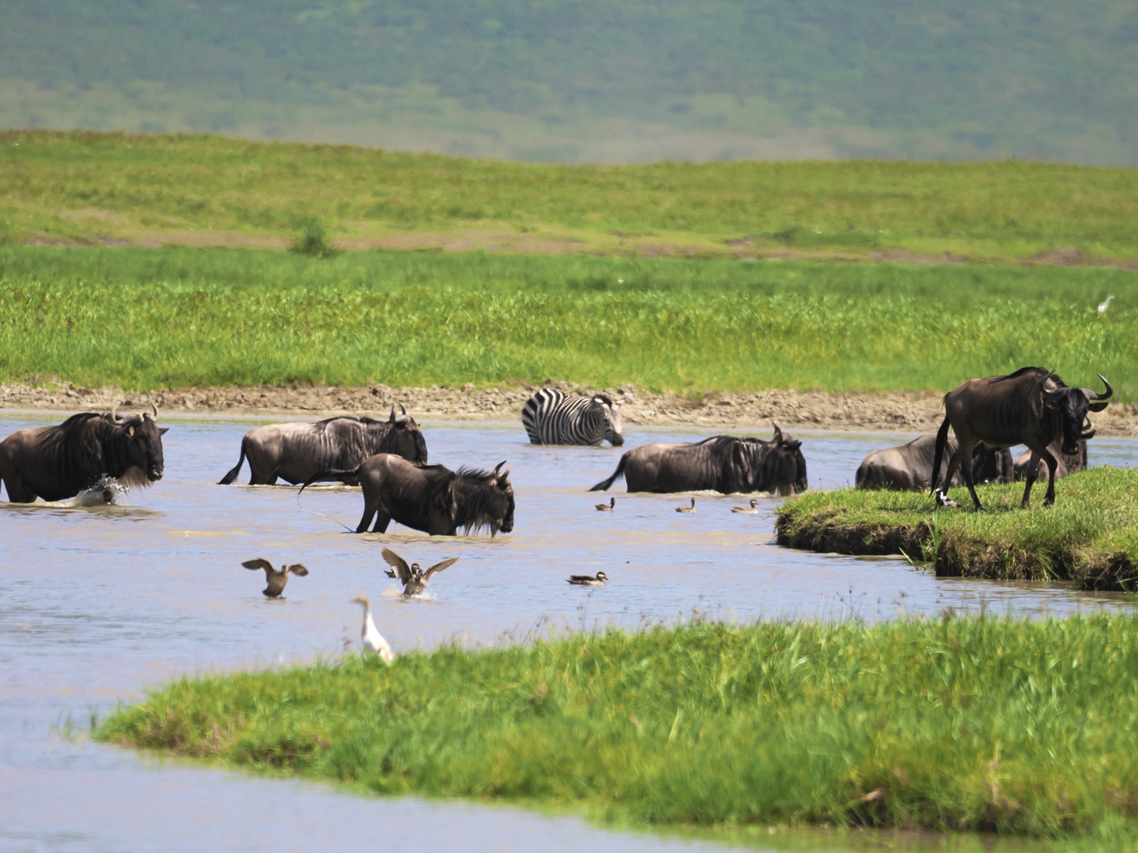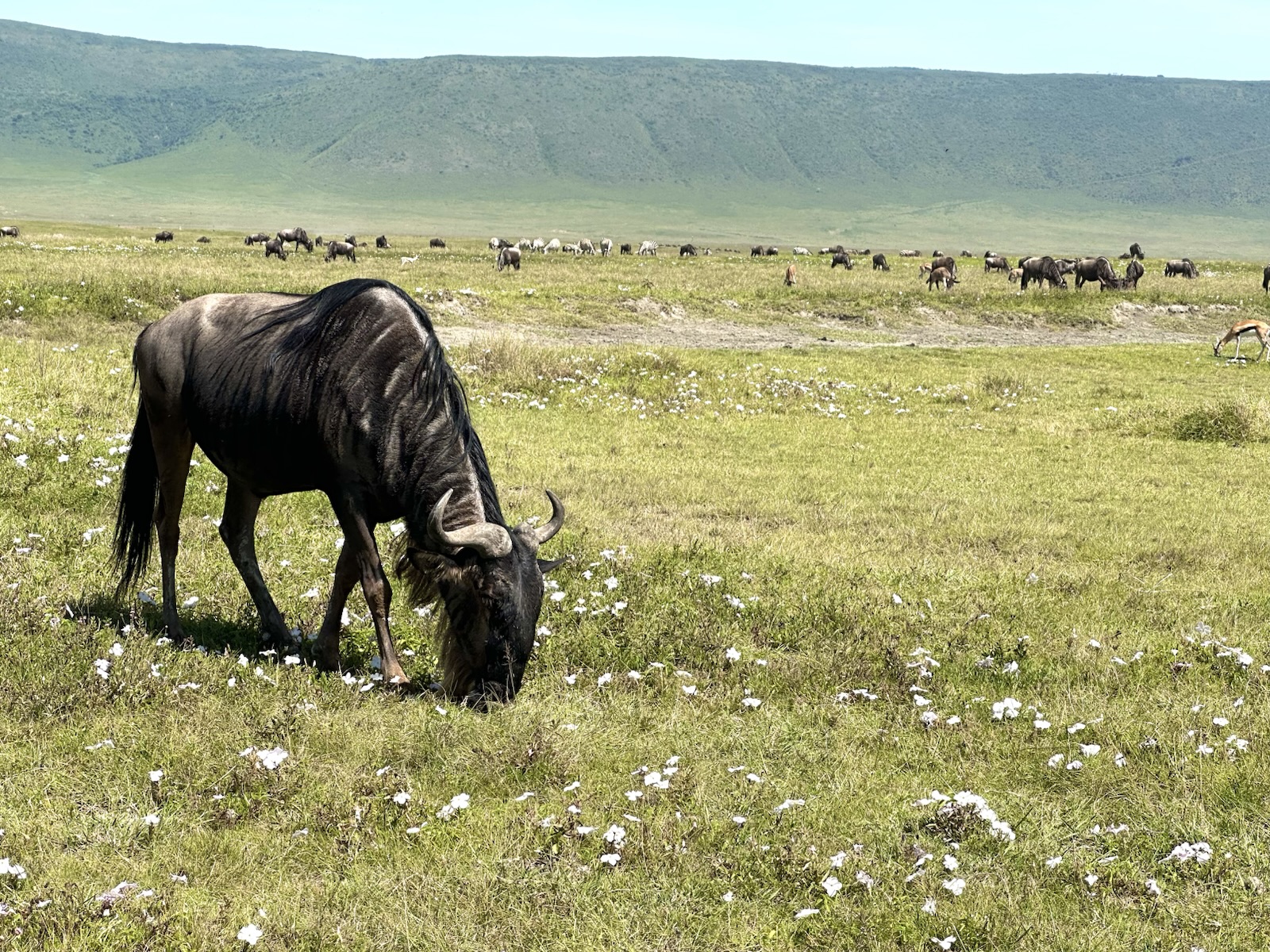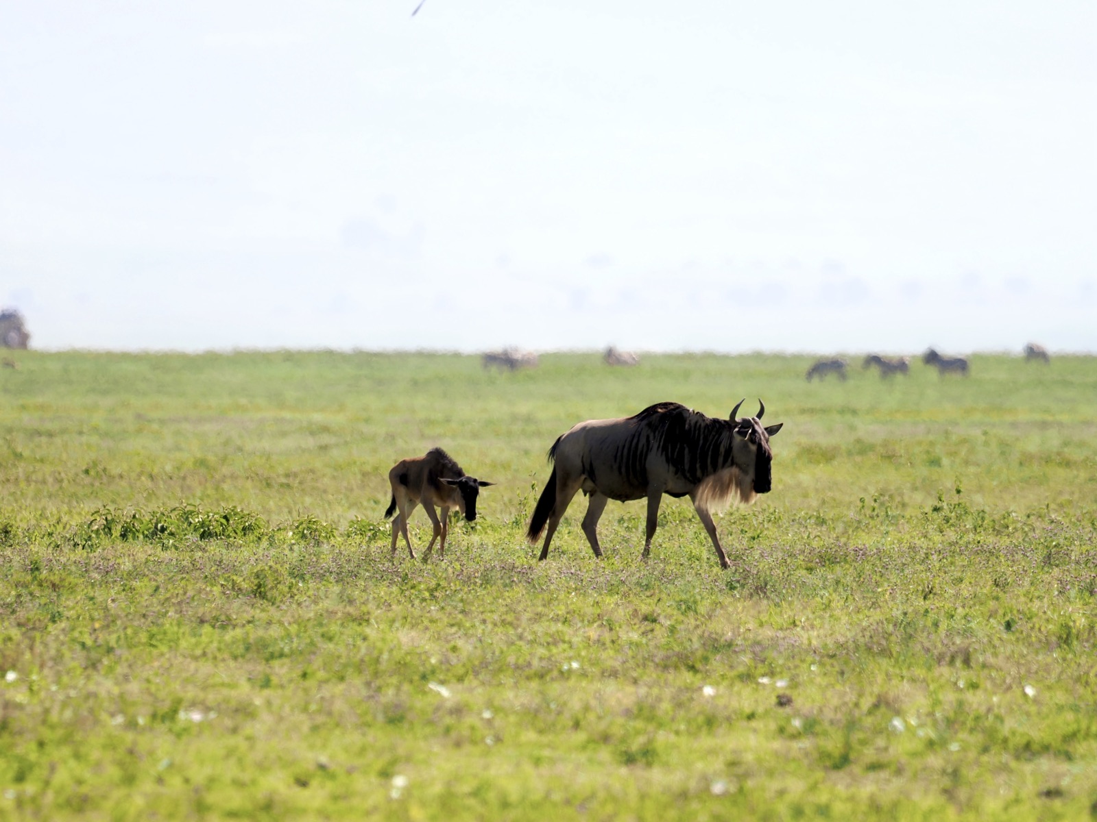 今年は、ジャッカル、ハイエナの姿を全くクレーター内で見ることがなく疑問に思ってガイドに聞いたら、ヌーの出産の1回目のピークが終わって、胎盤をお腹いっぱい食べてみんな好きなところに行ったのだろうと。1月下旬から2月の間に50万頭のヌーの新生児が生まれるがやっぱり波はあって今年も早かったようだ