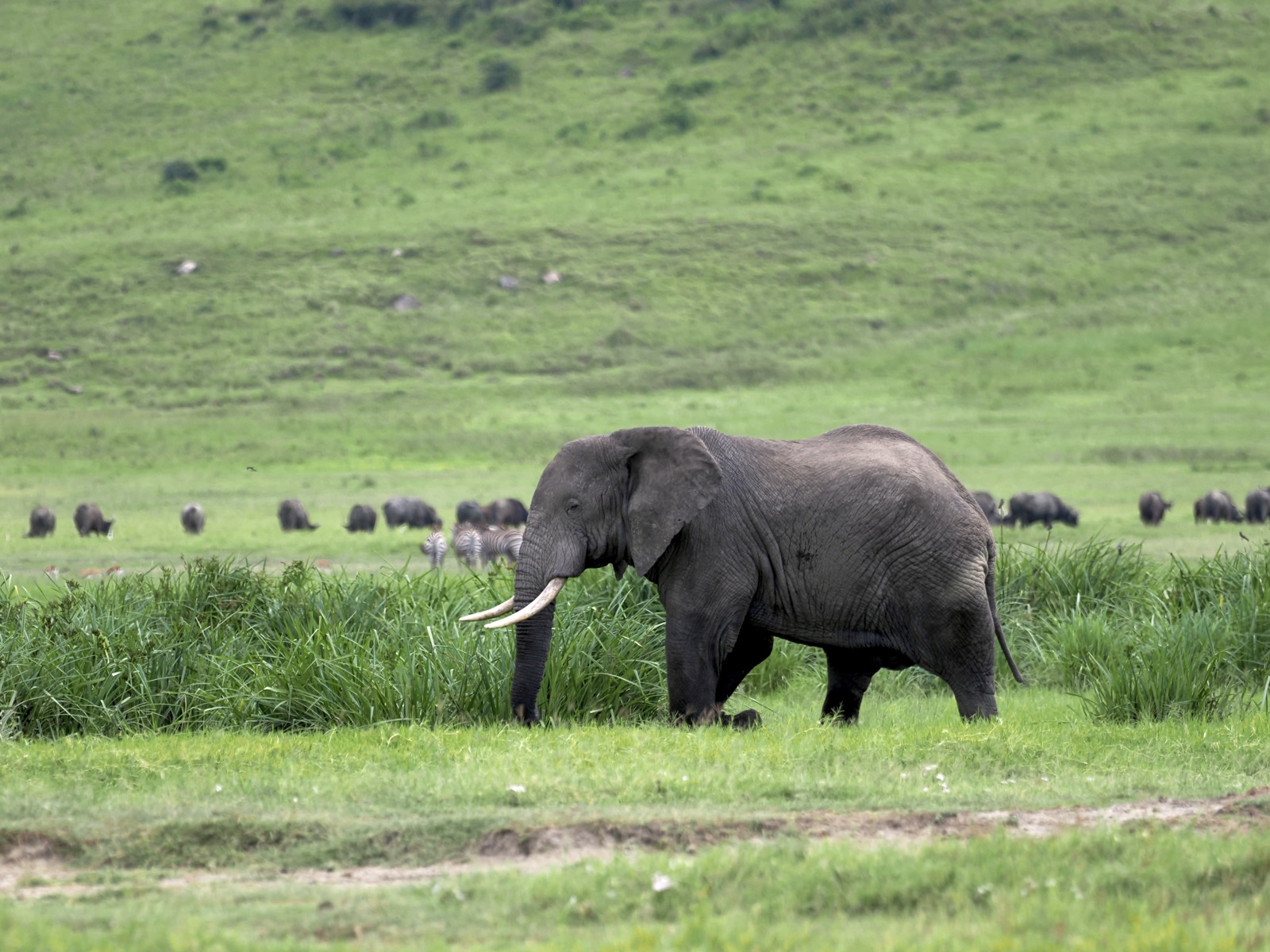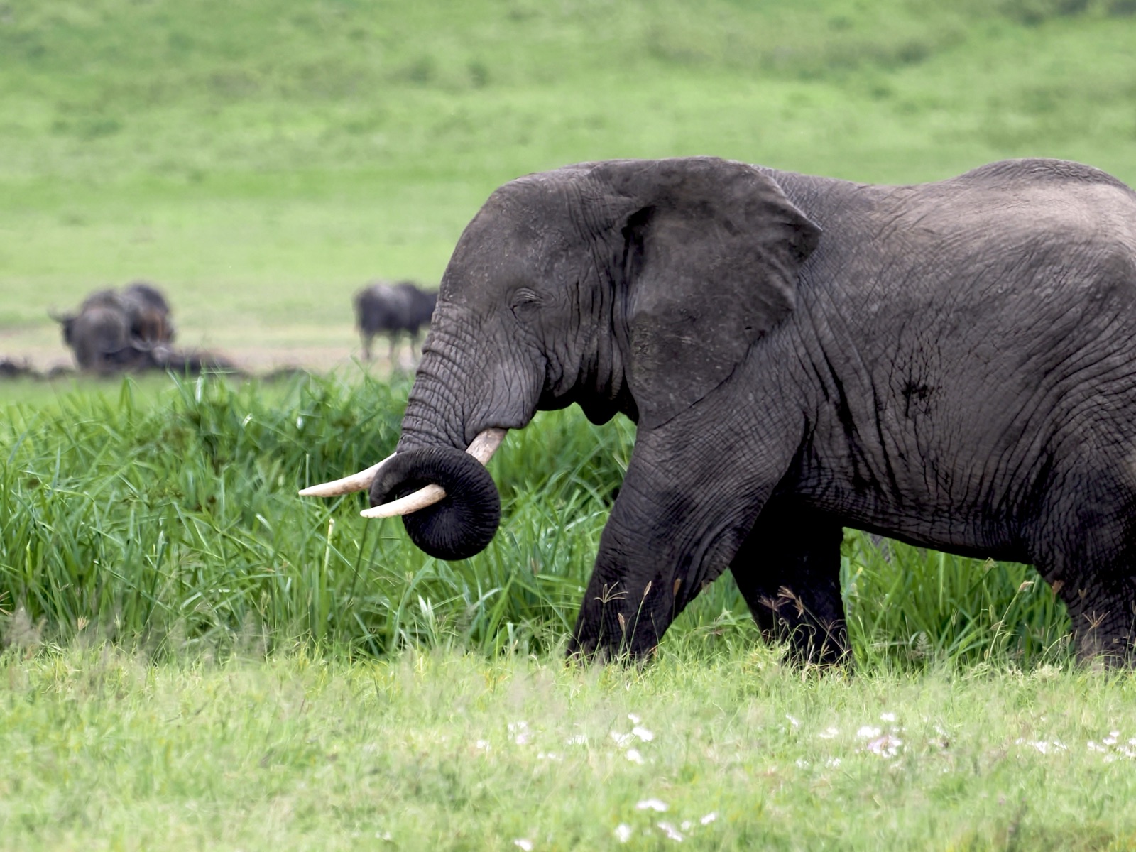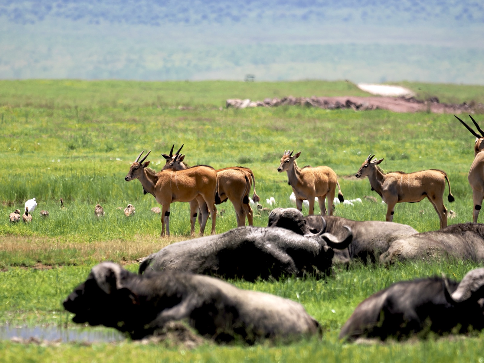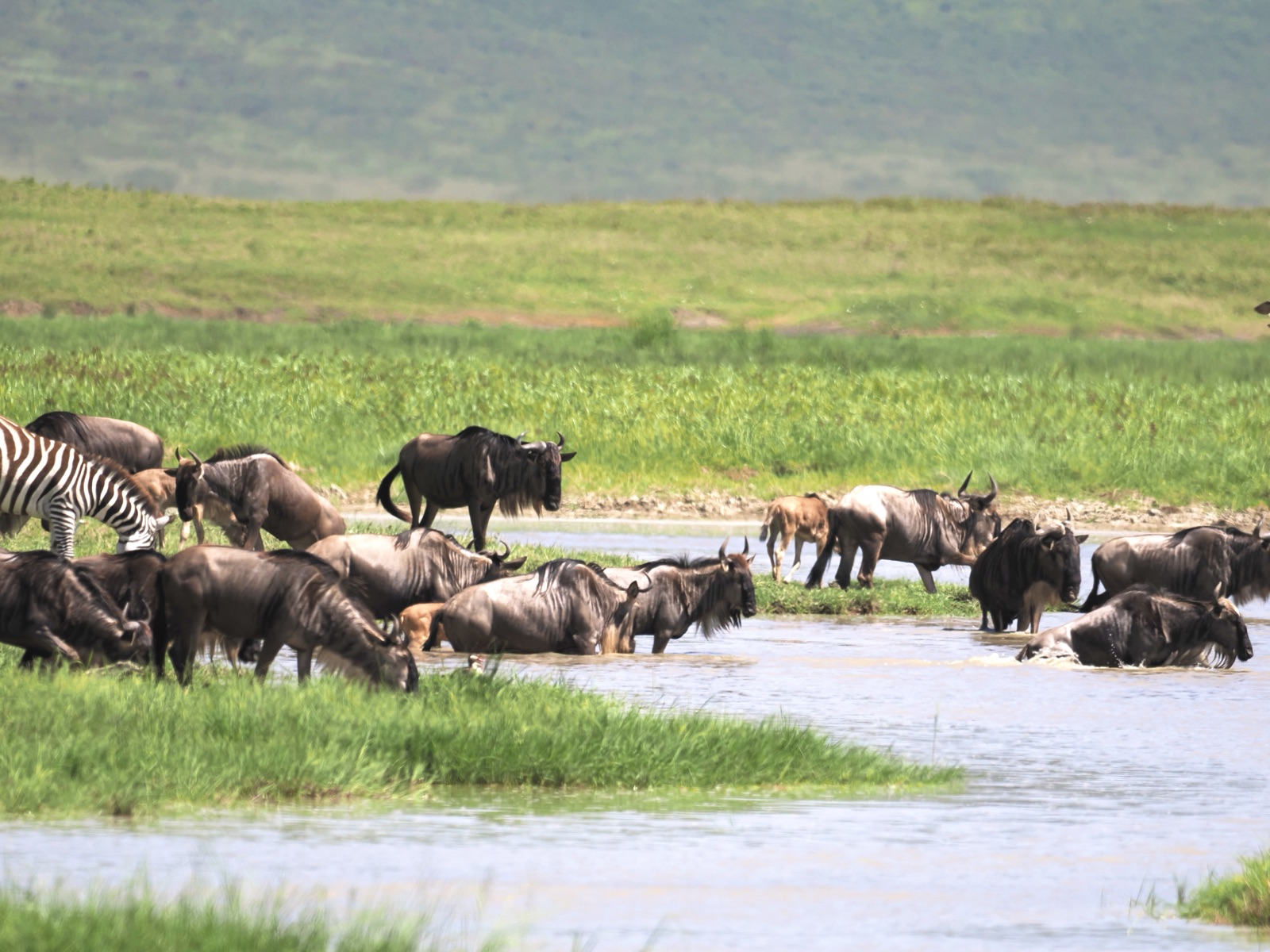 今年は、ジャッカル、ハイエナの姿を全くクレーター内で見ることがなく疑問に思ってガイドに聞いたら、ヌーの出産の1回目のピークが終わって、胎盤をお腹いっぱい食べてみんな好きなところに行ったのだろうと。1月下旬から2月の間に50万頭のヌーの新生児が生まれるがやっぱり波はあって今年も早かったようだ