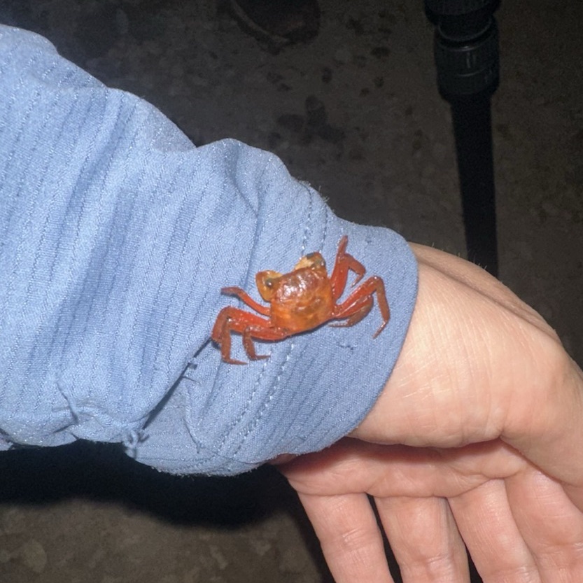 0813 ハイド到着。ハイドの手前に建物のトイレがある。屋根があるハイドだがゆったり座ると一列目は8人位でちょうどよいくらいの広さ。ガイドとレンジャーは、2列目後方に。物置き台もありスペース的には問題はない。森林管理局のレンジャーさんが親切で固有種のカニを見せてくれたり、チメドリ類をガイドが不在時は教えてくれる。良いバーダーだと後から聞く