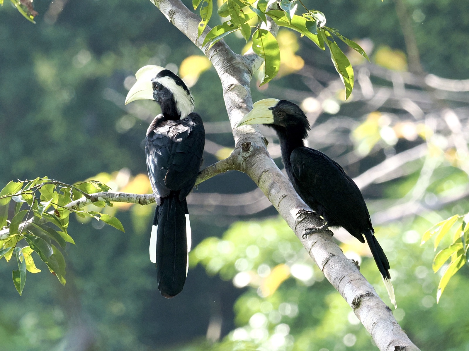 サイチョウ198-3雄雌 一部葉蔭から見える