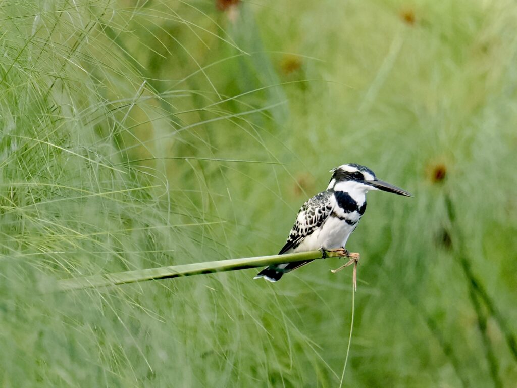 観察は4日間、計5回のボートで行った。湿原は抽水植物(根は水中または泥の中にあり、茎や葉が水面より上に出ている植物)が密集し水路と植物帯が複雑に入り組んで、ときに草の壁みたいにみえる。パッと見て、視界に入る生き物の数は多くないかもしれない。しかし観察しはじめれば、水辺の鳥は豊富にそこここに見え、野太いゴォーゴォーというカエルの鳴き声が時おり聞こえ、頭上にインコ(なんとヨウムが一回飛んでいった)、カモやサギが舟の前を飛んで行くのも見えるし、パピルスにセッカやカワセミの仲間が止まっているのも見える。水面に浮く植物に細くて小さいトンボなどの昆虫の気配、水中には2センチ程度のたくさんの魚なども見える。生命の密度は非常に高いことが感じられる環境だった。直接よく見えなくても、そこには確実に生き物がいる。その感覚は雪原で痕跡を追いながらユキヒョウの存在を感じ取ったモンゴルのときとよく似ていた。