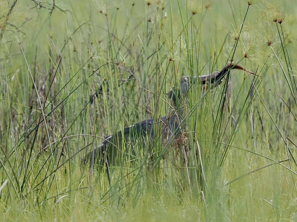・前日と同じ幼鳥ハシビロコウを観察したが、前日と異なり最初に見つけたわけでなく、既に舟の数が多く、個体がストレスを感じている様にしか見えず早々に離脱。ガイドと話し見られない可能性はあってもいいから成鳥個体を探すことにシフトする